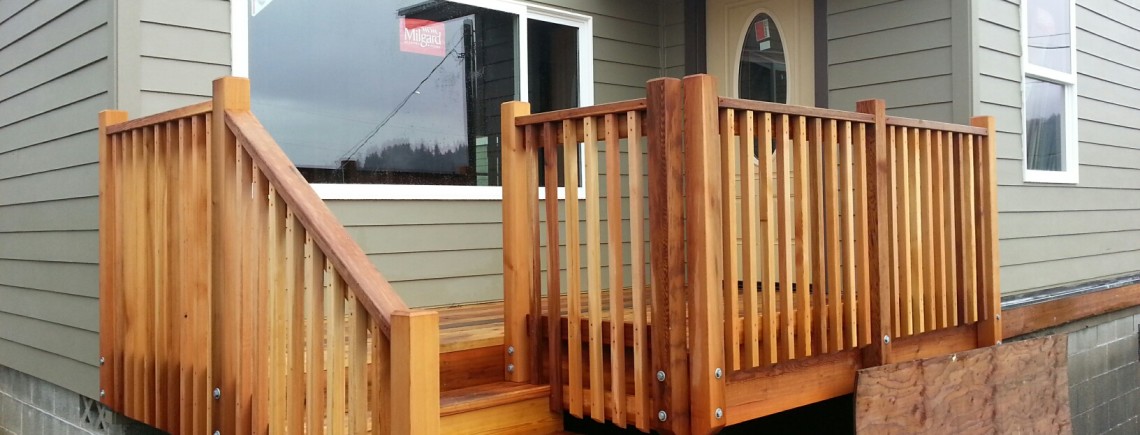 Take a look at the finished entrance stairway of the house in Garibaldi. The small deck provides a nice little space to set chairs or maybe even a grill! JLT is committed to providing its clients with outstanding craftsmanship.