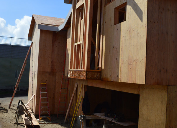 The addition in Rockaway Beach is progressing every day! Here you can see JLT has started laying the roof sheathing and installing fascia boards. It might not be watertight quite yet but JLT Construction will soon have this building sealed and waterproofed.