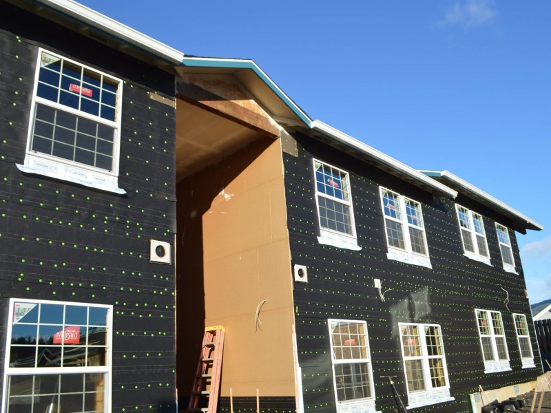 Building #1’s weatherproofing is up and it’s just about ready for siding!
