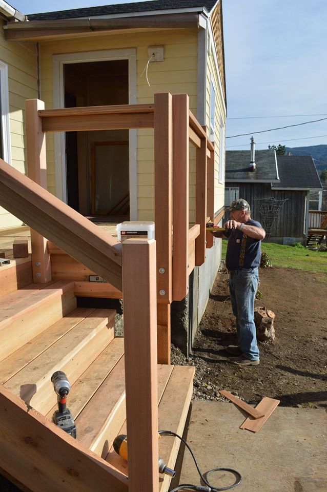 Toby is making sure the measurements are right as he works on the entrance deck for the Garibaldi house. JLT prides itself on fine craftsmanship and uncompromising attention to detail.