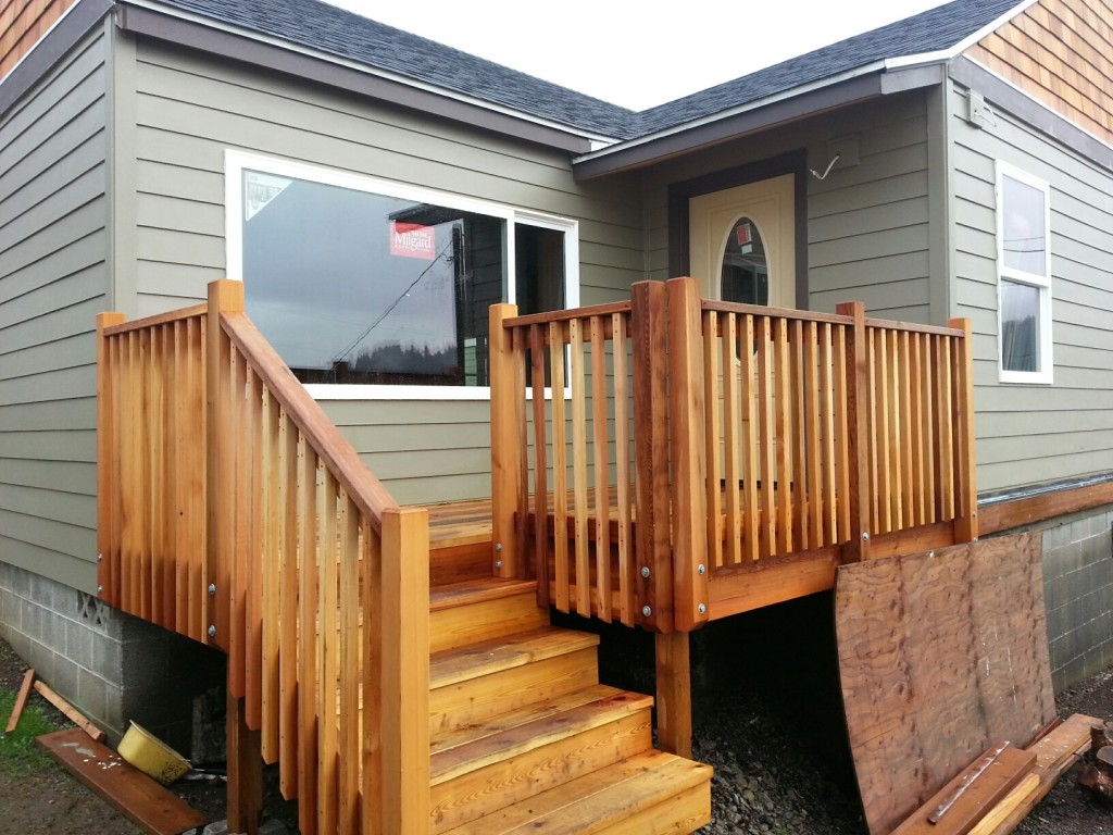 Take a look at the finished entrance stairway of the house in Garibaldi. The small deck provides a nice little space to set chairs or maybe even a grill! JLT is committed to providing its clients with outstanding craftsmanship.