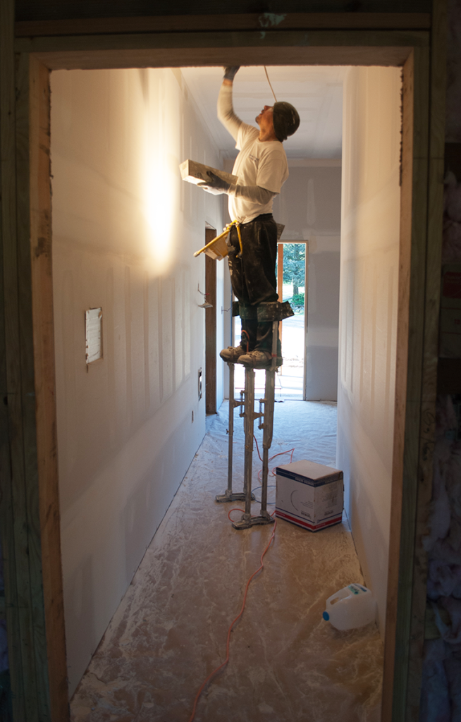 Just finishing up a few details on the dry wall here at the Shorewood lodge! Who else thinks those stilts look really fun?!
