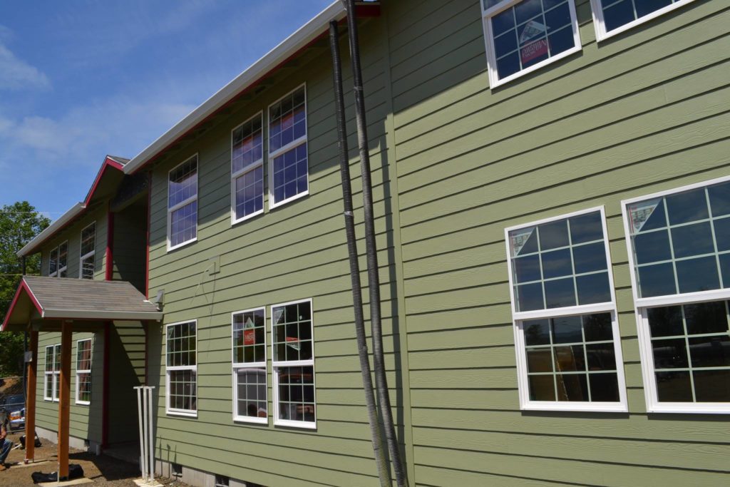 Getting a feel for the final look of building #1 after applying the first coat of paint on the siding and trim.
