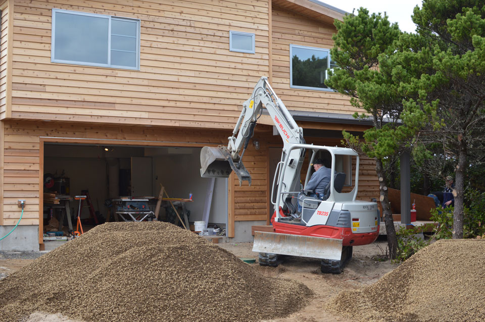 Things are really moving along with the custom house that we’re building in Nedonna Beach. Here we are getting ready to spread gravel around for the driveway.