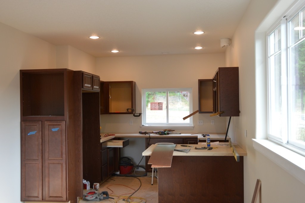 JLT Construction is moving quickly to get these homeowners into their brand new Garibaldi home. The kitchen cabinets are being installed, the recessed ceiling lights are working in the kitchen, the wide windowsills are in place and the walls have been painted. It won’t be long now!