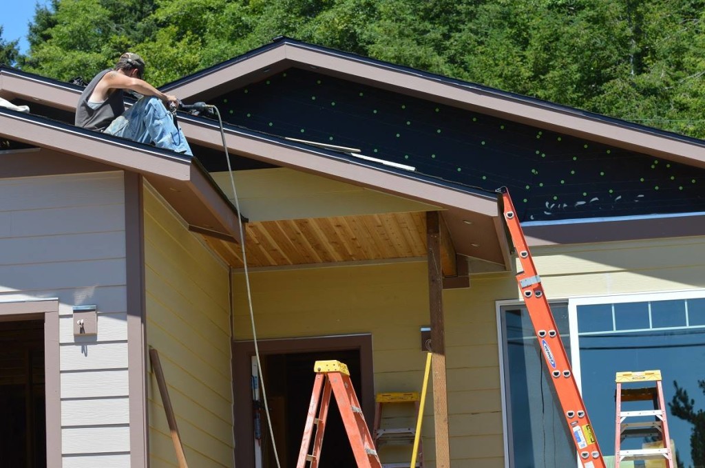 See the cedar plank ceiling on the front porch? JLT Construction is going to add more interest to this entry with cedar shake siding on the upper façade near the roofline. This Garibaldi home will have some serious pizazz!