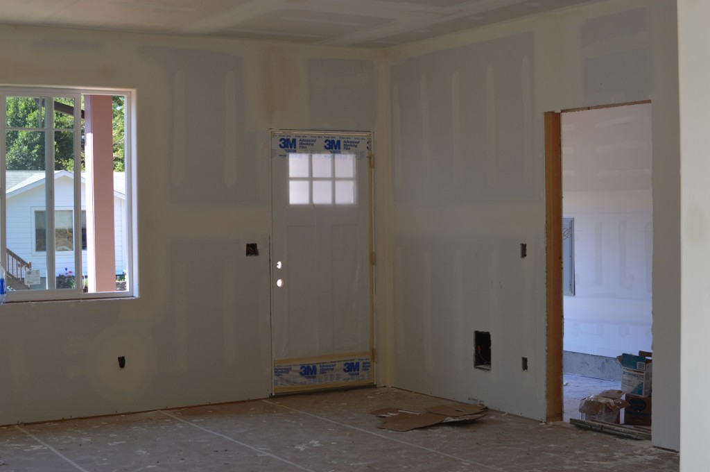 Now that the walls are up, the fun begins in this new home by JLT Construction! Notice the tall ceiling height? Soon there will be lighting, flooring, cabinets and countertops bringing this charming home to life for new owners.