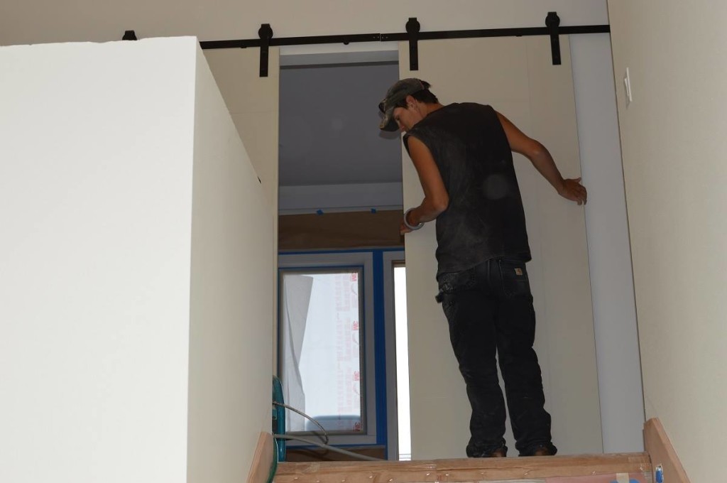 As Allen demonstrates, these barn doors are quite practical when you don’t want a door swinging into the path of traffic. They make a strong, interesting statement at the top of the entry stairs too!