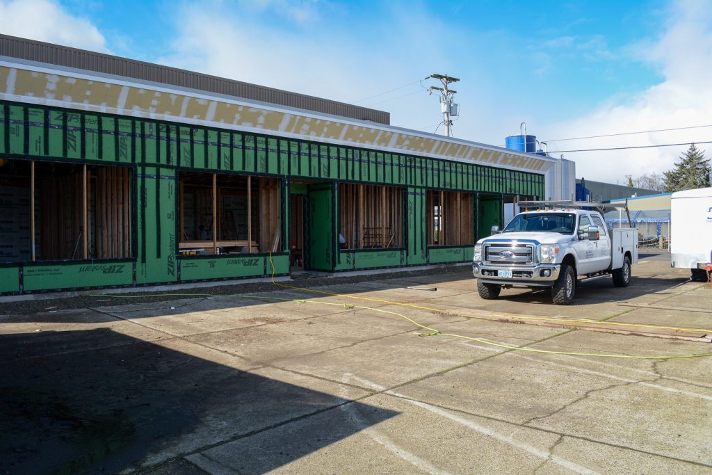 The exterior transformation is moving fast, and framing for the shop spaces has officially begun.