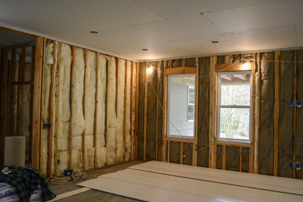 The interior is taking shape with insulation in and ceilings up.